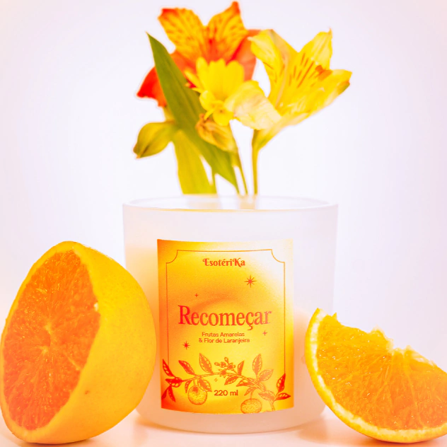 Leve como a brisa de um novo começo, a vela aromática Recomeçar combina o frescor das frutas amarelas com a delicadeza da flor de laranjeira, criando um aroma luminoso e inspirador.